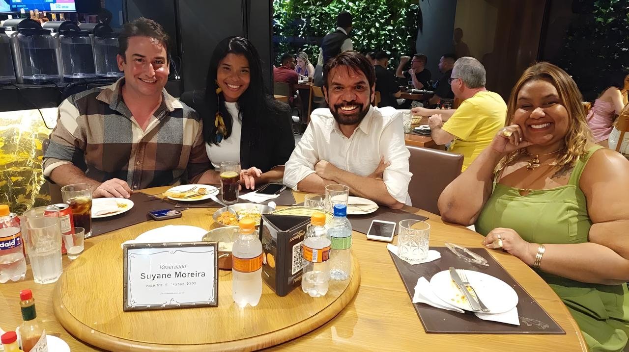 Na foto de divulgação, Suyane está ao lado do cantor Paulo Dourado e seus parceiros no projeto, os produtores Juninho Batista e Jack Queiroz. A imagem reflete a união de talentos em torno de causas importantes, mostrando que a atriz não para de se envolver em trabalhos que têm um impacto positivo na sociedade.