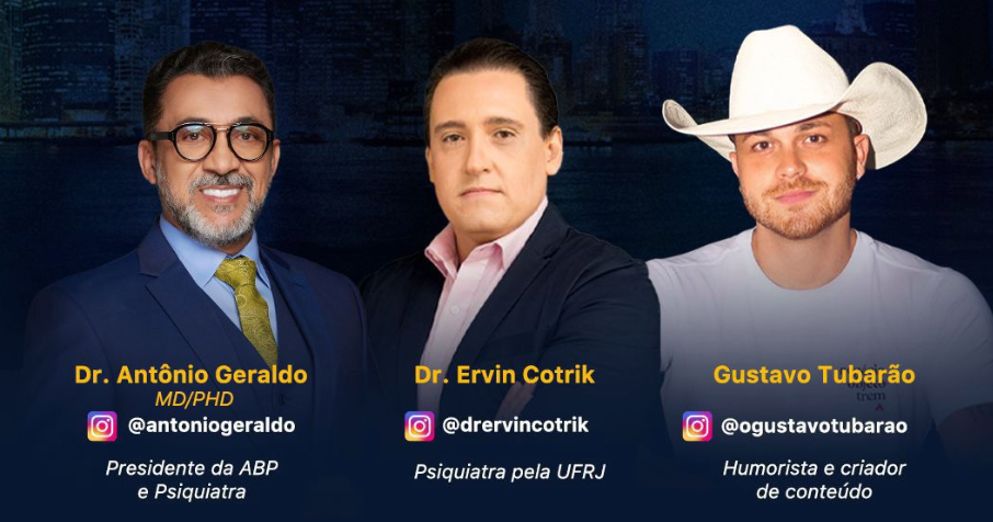 Na live oficial da Associação Brasileira de Psiquiatria (ABP), o médico psiquiatra Dr. Ervin Cotrik e o presidente da entidade, Dr. Antônio Geraldo, receberão o humorista e criador de conteúdo Gustavo Tubarão. O encontro terá como objetivo discutir a recente crise de pânico vivenciada por Gustavo em um vídeo publicado em sua academia.