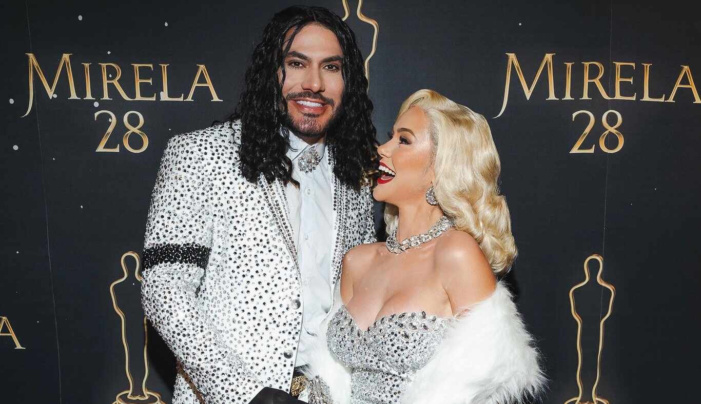 Logo na entrada, os convidados foram surpreendidos com uma superprodução assinada pela decoradora Sheyla Lucena, que transformou o espaço em um verdadeiro cenário de cinema. E o casal anfitrião entrou no clima: Mirela e seu noivo, Yugnir, surgiram caracterizados como Madonna e Michael Jackson, recriando os looks icônicos dos artistas no Oscar de 1991. A produção foi feita pelo estilista Kelvin Mendes, com styling de Wally Rodris.
