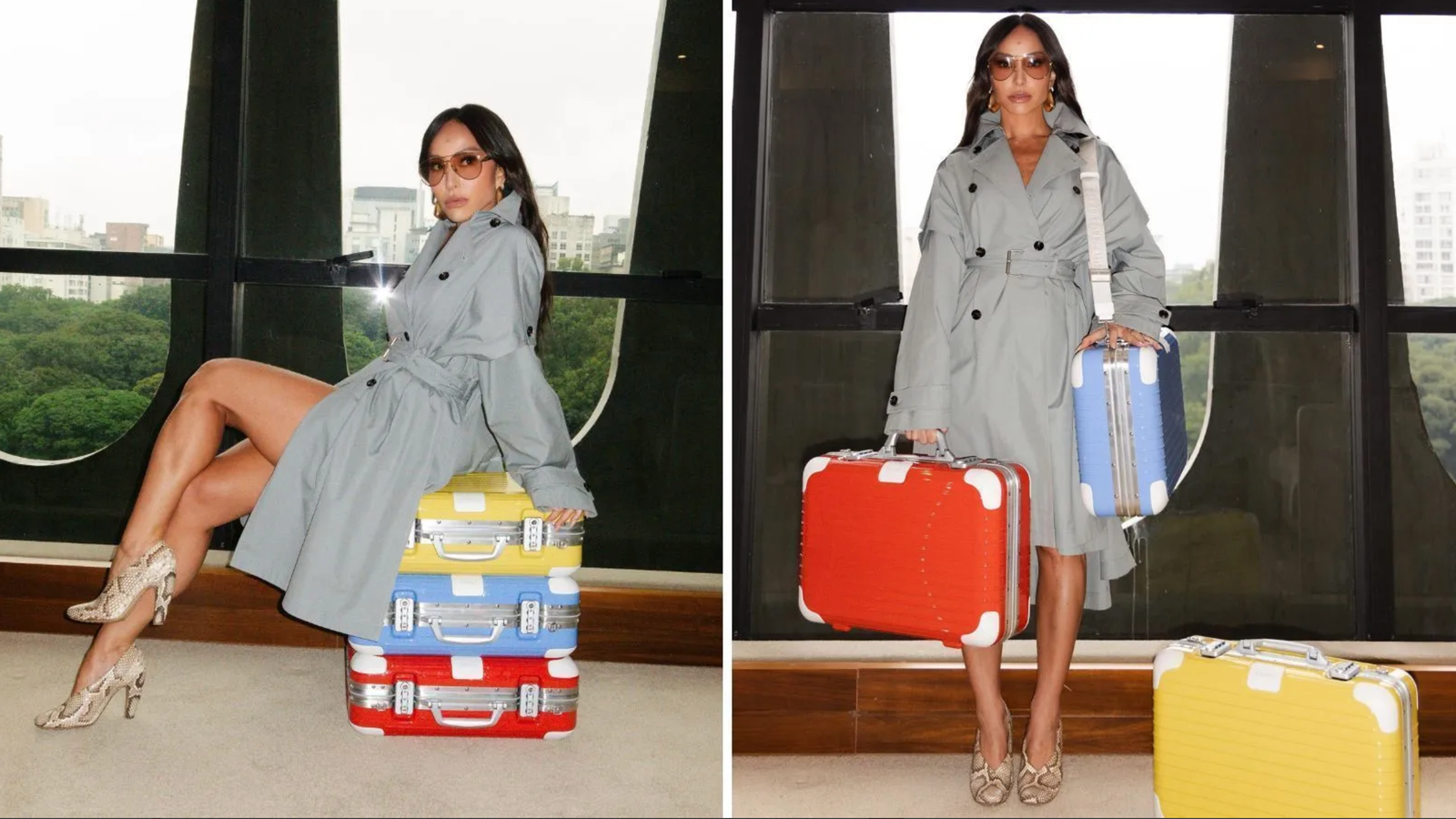 Nos registros, a ex-BBB aparece com três modelos diferentes da marca — em tons vibrantes de vermelho, azul e amarelo. Segundo a fabricante, as peças se destacam pelo design de precisão, resistência, mobilidade suave e um toque de elegância atemporal.